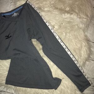 Good, preloved condition. Mizuno Fastpitch Long Sleeve Shirt. Gray with black dots. V-neck. Embroidered logo.
