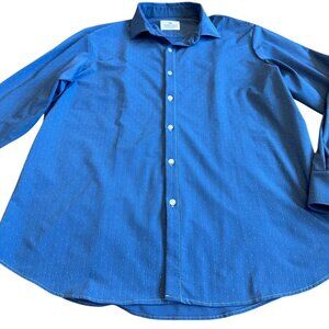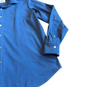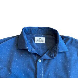 Mizzen + Main Blue White Polka Dot Shirt Long Sleeve Stretch Standard Fit Large