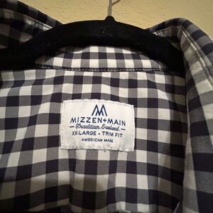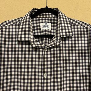 Mizzen Main Button Up Shirt XXL Trim Fit Performance Stretch Gingham Check Plaid