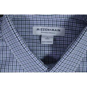 Mizzen + Main ButtonUp Shirt Men L White/Blue Gingham Outdoor Performance Cotton