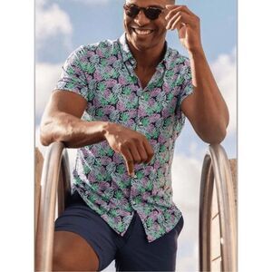 This Mizzen Main Halyard Short Sleeve Mens Palm Leaf Print Halyard size Small Green