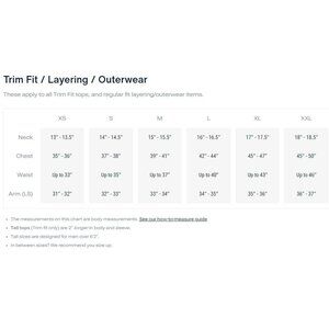 Marked size M Trim Fit. These don't shrink - please see size chart in photos for measurements.