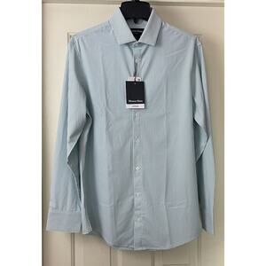 Mizzen Main Leeward Dress Shirt Mens Medium Trim Nile Blue Stripe Button Down