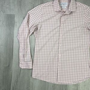 Mizzen + Main Leeward Shirt Mens Large Trim Pink White Check Golf Casual P