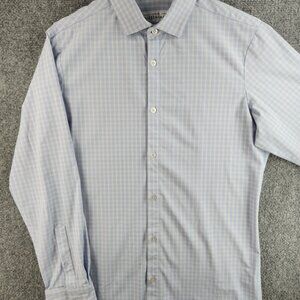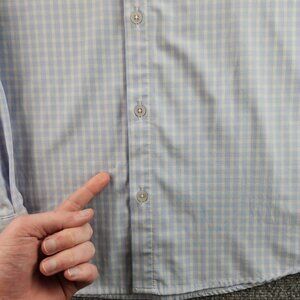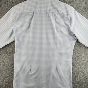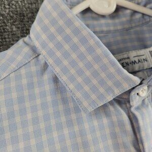 Mizzen + Main Medium Trim Fit Blue Plaid Long Sleeve Button Up Stretch USA Made