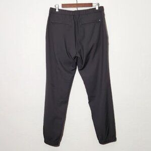 The Mizzen & Main Men's Athletic Pants in size Large are designed for activewear occasions, featuring a solid gray color and a tapered leg style. These machine washable pants offer an athletic fit with an elastic waist and stretch material for comfort. The jogger style pants also include zip pockets and pockets for convenience, suitable for all seasons including winter, summer, fall, and spring. Perfect for men who enjoy a blend of designer athleisure and preppy fashion, these pants are a versatile and stylish choice for an active lifestyle.