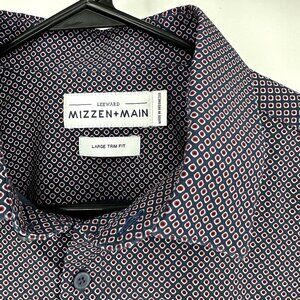 Mizzen + Main Men's Button Down Shirt Trim Fit Blue/Red print Size Large