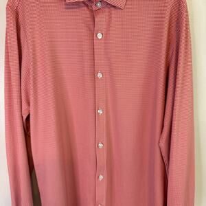 Mizzen Main Mens Gingham Red Long Sleeve Button Down Trim Fit Shirt Size Large