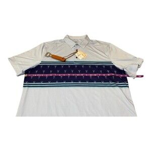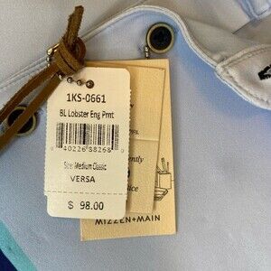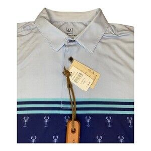 Mizzen Main Mens Polo Golf Shirt Medium Blue Lobster Versa PTO Bottle Opener NWT