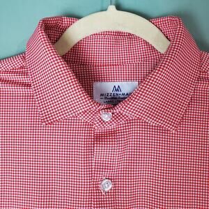 Mizzen + Main Men's Red White Check Trim Fit Button Down Long Sleeve Shirt Size Large