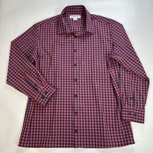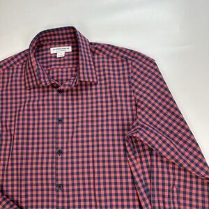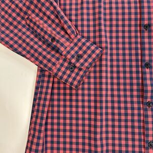 Mizzen + Main Performance Button Down XL Gingham Plaid Shirt Pink Navy Trim Fit