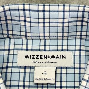 Mizzen + Main Performance Shirt Mens Small TRIM FIT Blue Plaid LWL-F20-42015 L/S
