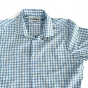Mizzen Main Shirt Adult LARGE Blue White Gingham Checker Leeward Trim Fit