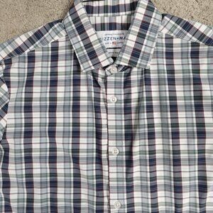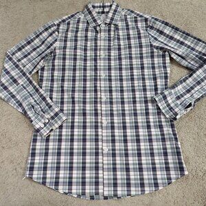 Mizzen + Main Shirt Medium Blue Plaid Trim Fit Performance Leeward USA Made