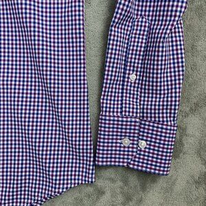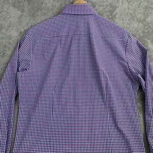 Mizzen Main Shirt Men Large Trim Purple Blue Leeward Plaid Check Button Stretch