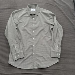 Mizzen Main Shirt Mens XL Trim Fit Green Burgundy Plaid Performance Stretch USA