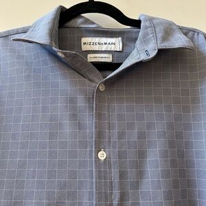Mizzen + Main button down collared shirt. Standard Fit. Poly. Blue and white