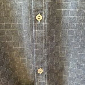 Classic button down oxford shirt. See pics for measurements. There are a few pulled threads on back of shirt. See pics. These are minor and do not affect integrity of the shirt. Otherwise in excellent shape.