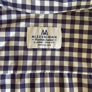 Mizzen + Main long sleeved button down. Like new condition! Extra large fe trim fit. Purple and white gingham check. Smoke free home!