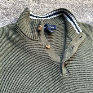 Mizzen+Main Green Ribbed Pullover Mock Neck Button Sweater Men’s L Read