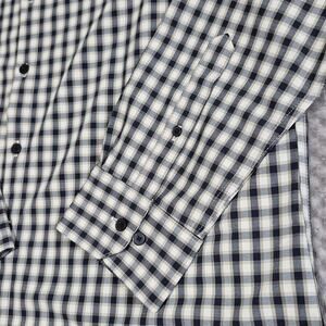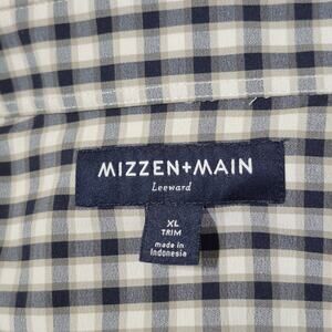 Mizzen+Main Shirt Mens XL Blue Plaid Leeward Trim Fit Stretch Flex Button Down 82% Polyester 18% Spandex.