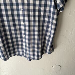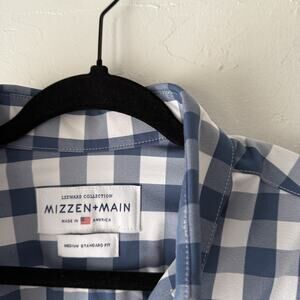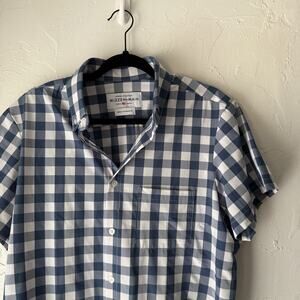 Mizzen+Main Shirt Mens Medium Blue White Gingham Plaid Leeward Performance Short Sleeve