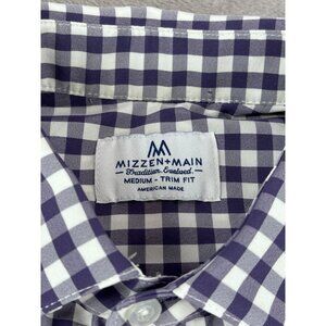 Mizzen+Main Shirt Mens Medium Trim Fit Navy/White Checkered Long Sleeve