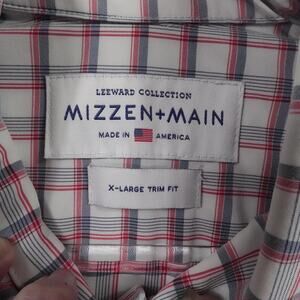 Mizzen+Main Shirt Mens XL White Red Plaid Trim Fit Leeward Collection Office