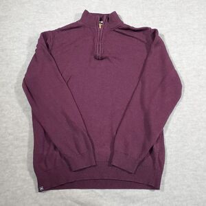 Mizzen+Main Sweater Mens Large Red Tight Knit Ribbed Hem Quarter Zip Pullover
