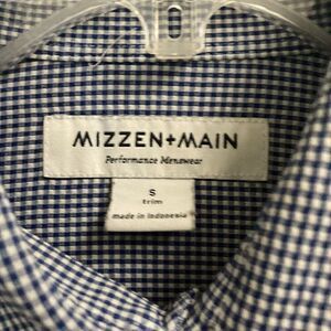 Mizzen+Main Performance Menswear Trim button up blue gingham print shirt S