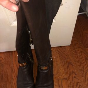 Color brown. Size 9. Small not too visible scratch on front. I believe It can be cover by using shoes polish.