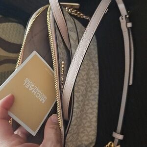 new small mk crossbody really cute color cream with baby pink