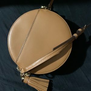 Tan small circular shoulder bag perfect condition