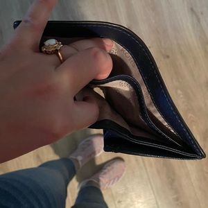 Wallet is in good condition other than the zipper inside does open and close as it should but leather piece fell off so I put that in the zipper part it can be easily fixed.