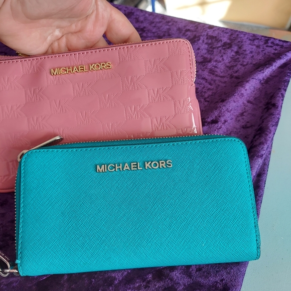 Two horjus mk wallets pink new and teal used once