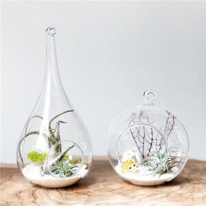 🧿Package Included: 1× Teadrop terrarium, 1×Globe terrarium, and Jute Rope. Note: Plants and other decorations are not included in this set. Glass products are fragile, please treat it carefully when hanging.
