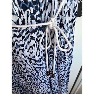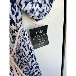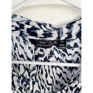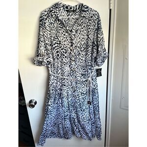 Mlle Gabrielle 2X Blue White Roll Tab Long Sleeve Midi Length Button Down Dress