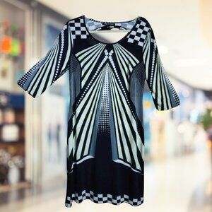 Mlle Gabrielle Black & White Geometric Print Dress – Size XL