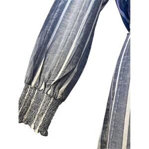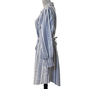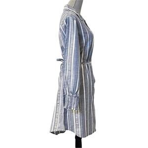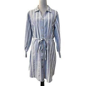 Mlle Gabrielle Blue Striped Belted Button Up Shirt Dress Coastal Minimalist