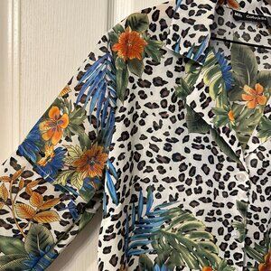 Mlle Gabrielle | Sz 18 Animal Print Tropical Floral Button Up Tunic Top Cover Up