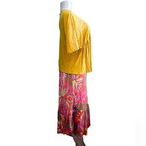 Mlle Gabrielle Tropical Floral Button Down Ruffle Midi Skirt Size XL