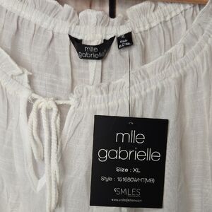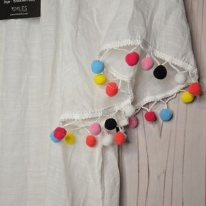 Mlle Gabrielle White Peasant Blouse with Multicolor Pom Poms Womens XL