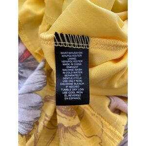 This beautiful Mlle Gabrielle floral skirt in size XL features a soft yellow fabric with vibrant flower prints, elastic waistband, and wooden button accents. Crafted with a rayon-polyester blend and a full polyester lining, this A-line skirt provides a flowy fit. Made in China with machine washable fabrics for easy care.