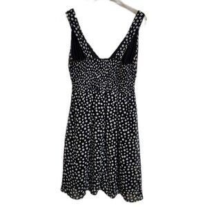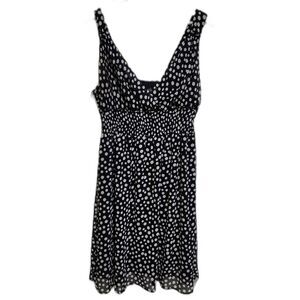 Mlle Gabriellle Dress Size 2X Black Polka Dot Chiffon Surplice V Neck Sleeveless Smocked Stretchy Feminine Party Wedding Flirty Casual