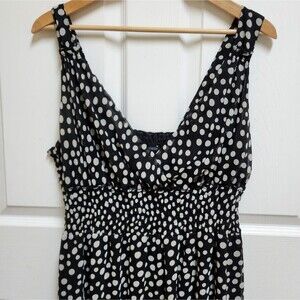 Mlle Gabriellle Dress Sz 2X Black Polka Dot Surplice V Neck Sleeveless Smocked