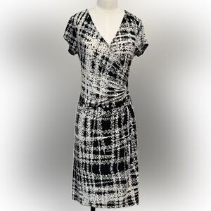 Mlle Gabrille Elegant Black and White Patterned Dress, Size Medium