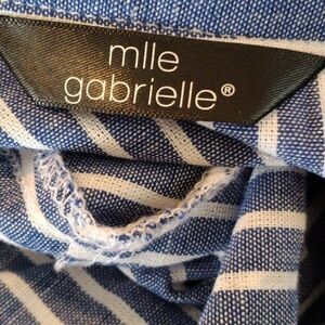Sweet dress for warmer weather. Crisp stripes with fun details. Zippered front pockets. Tabs on sleeves. Drawstring and elastic at waist. Size PL measures 44 at chest, 30-40 at waist, 46 at hips, 36 long from shoulder to hem. Easy and cool in every way.