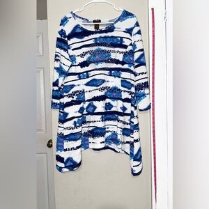 Múltiples Blue and White Patterned Long Sleeve Top- used size L mtp(26)