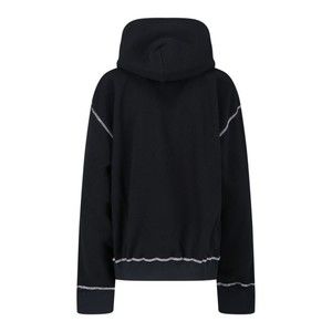 A statement piece from MM6 by Maison Margiela, this black hooded sweatshirt is made from plush teddy fabric for exceptional comfort. The standout WELCOME graphic brings a modern touch, while contrasting stitches elevate the relaxed fit. Ribbed trims and a straight hem complete the chic look, perfect for an upscale casual wardrobe.