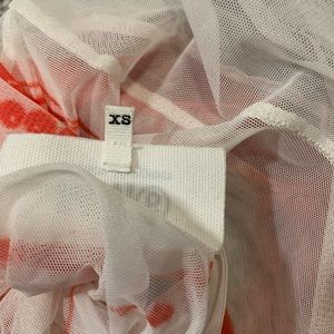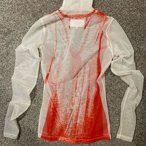 MM6 Maison Margiela’s red and white long-sleeved top is a semi-sheer jersey mesh patterned with a beaded necklace for an optical illusion effect. Send offers!